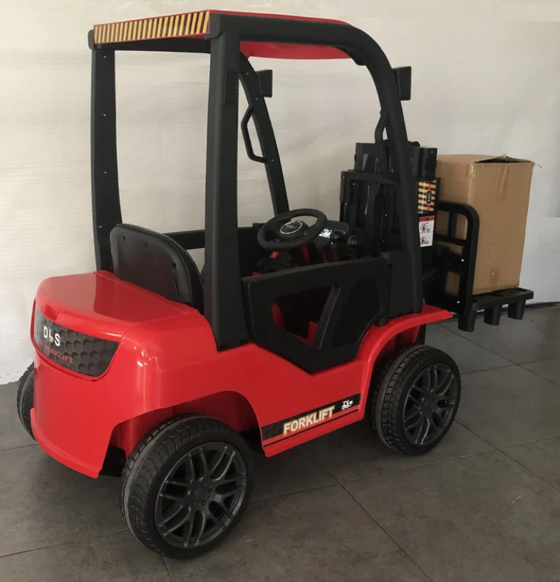 Dieser Gabelstapler ist mit allen modernen Funktionen ausgestattet, die man auch von anderen Kinderfahrzeugen kennt. Zur Standardausstattung gehören ein Sitz in Lederoptik, Gummireifen, Bluetooth, eine USB-Fernbedienung mit 2,4-GHz-Softstart und ein Kippmodus für die Kleinsten. Dieser äußerst realistische und funktionsfähige elektrische Gabelstapler ist ein echtes Highlight. Die Hebefunktion (max. 10 kg) ist ein echtes Plus.