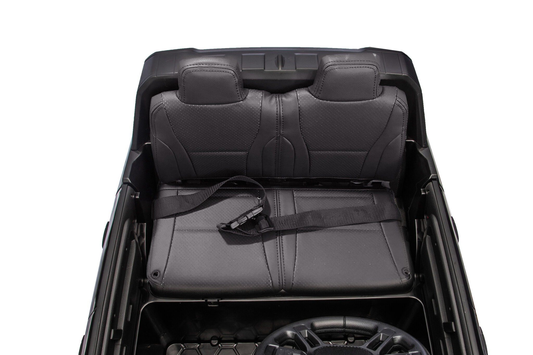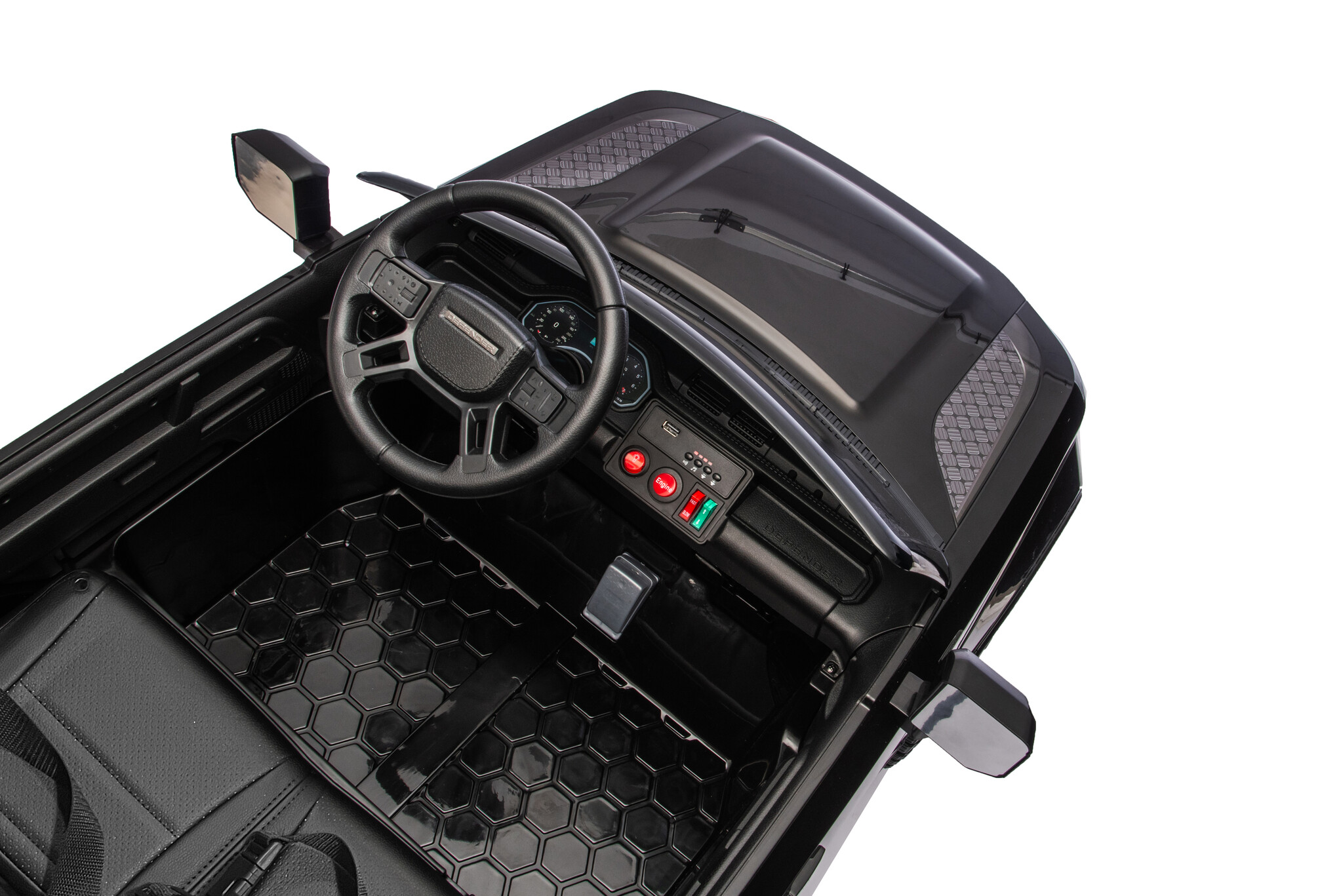 Der Wagen ist mit vier 24-Volt-Motoren ausgestattet und kann daher auch auf Gras und unbefestigten Wegen fahren. Er verfügt über zwei Türen, Scheinwerfer, Vorder- und Rücklichter und bietet die Möglichkeit, eigene Musik über ein Standardradio abzuspielen. Dank des Sanftanlaufs spüren die Kinder beim Beschleunigen keinen Ruck. Gestartet wird der Wagen mit dem mitgelieferten Schlüssel.